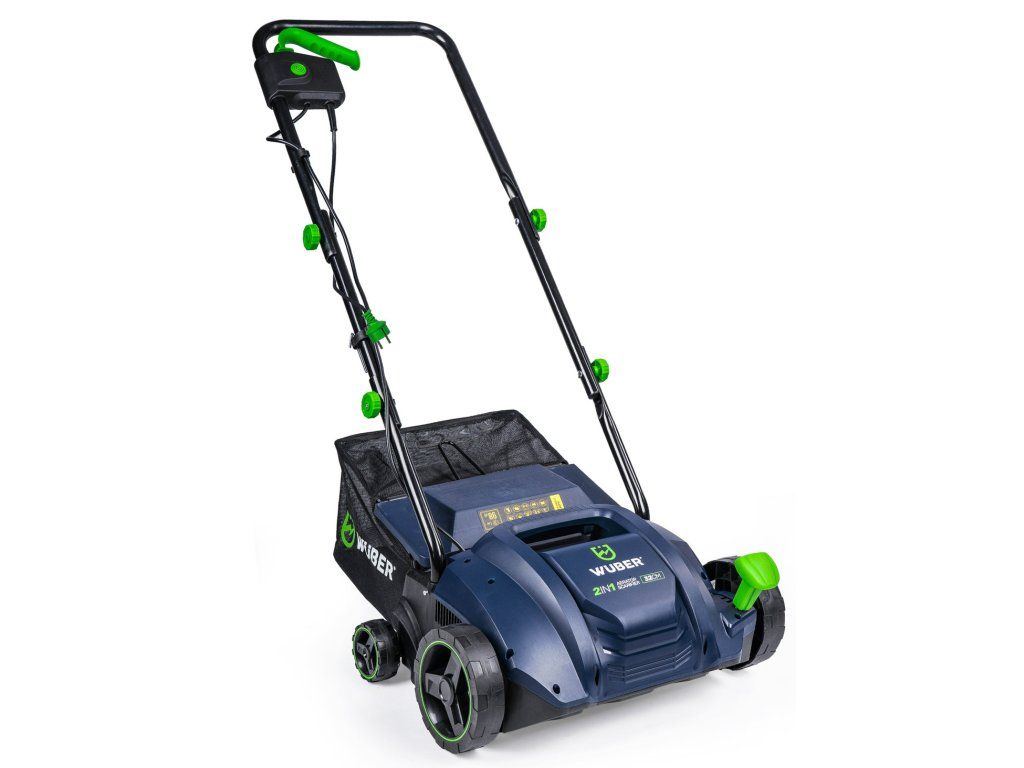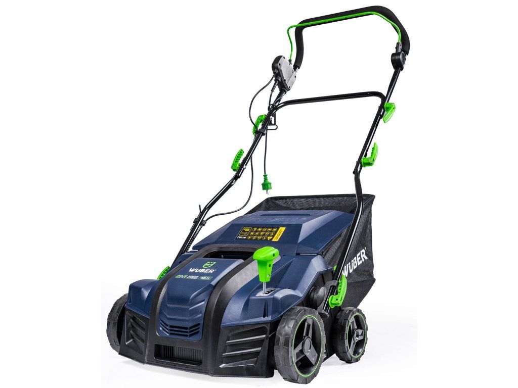 Elektrický vertikutátor/aerátor s výkonem 1500 W pro rychlou obnovu trávníku. Výměnné válce (vertikutační s 16 noži a aerátor s 20 pružinovými hroty), pracovní šířka 32 cm a koš 30 l urychlí práci na menších i středních plochách. Páka na čele stroje nabízí 4stupňové nastavení hloubky (-12 / -8 / -4 / +6 mm), široká kola zlepšují průchodnost na nerovném terénu a přídavné madlo usnadňuje přenášení.