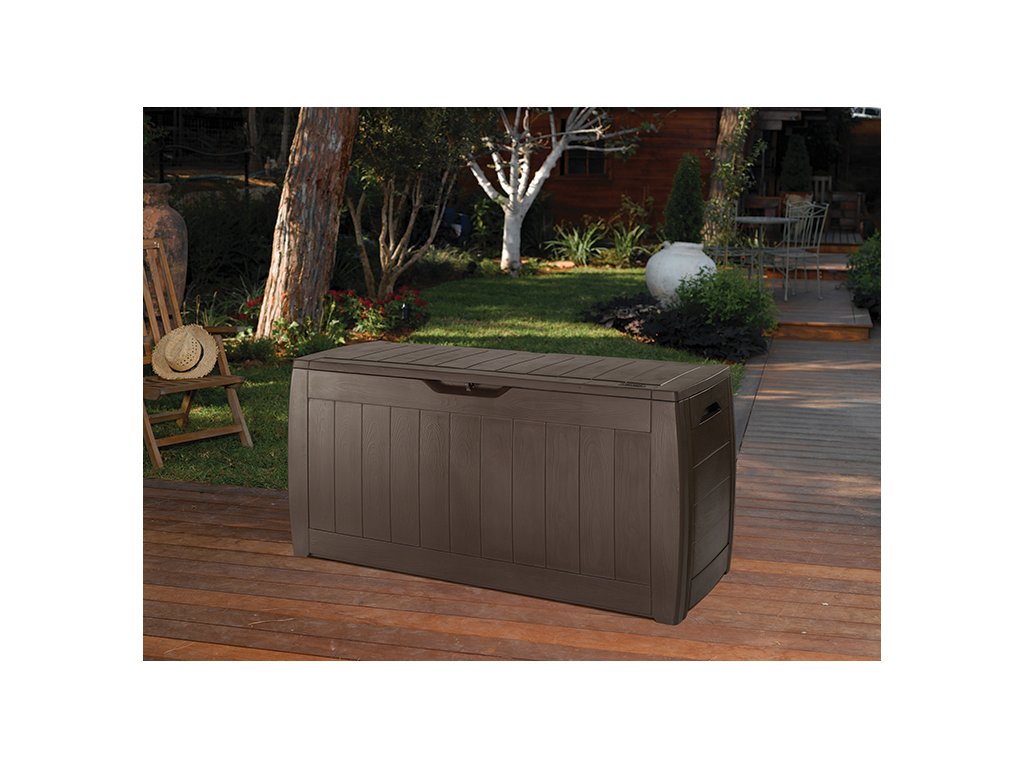 - Rozměrný nízkoúdržbový úložný box v designu dřeva