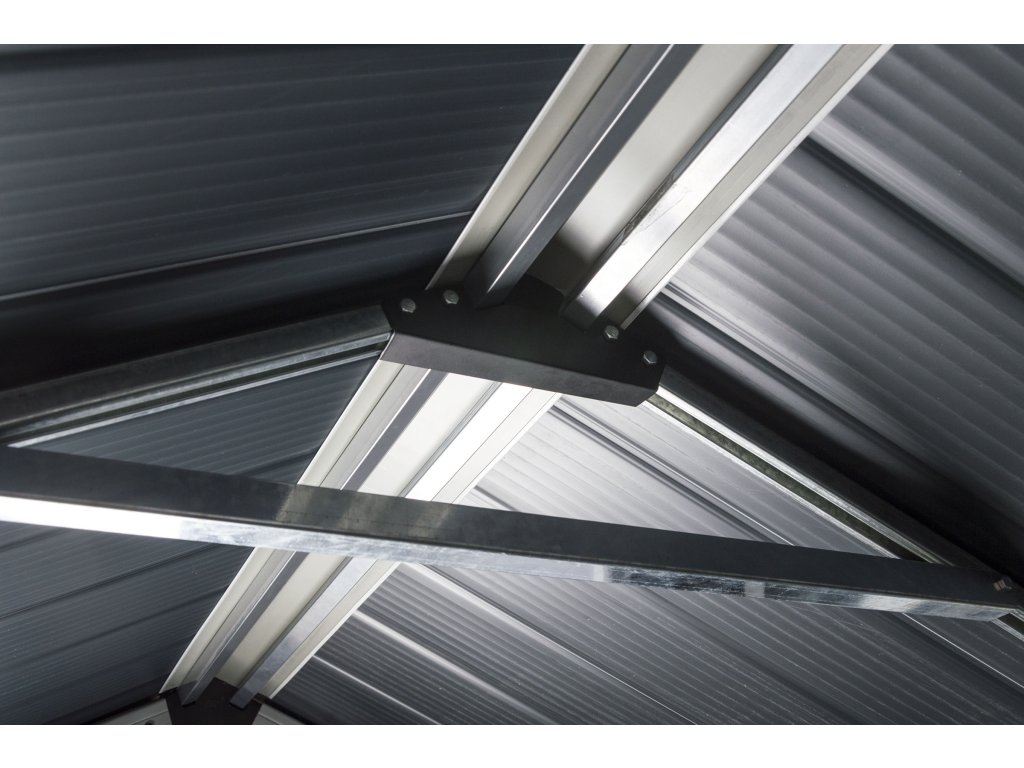 Konstrukce zahradního domku G21 se skládá z pozinkovaného plechu, plastových sloupků o síle materiálu 1,5 mm a vnějších panelů o síle 12 mm. Panely jsou vyrobeny ze sendvičového tvrzeného plastu. Střecha zahradního domku je zkonstruována tak, aby vydržela zatížení až 60 kg/m2. Na přední straně domku jsou umístěny dvoukřídlé dveře o šířce 151 cm a výšce 183 cm, které zajišťují snadný přístup.