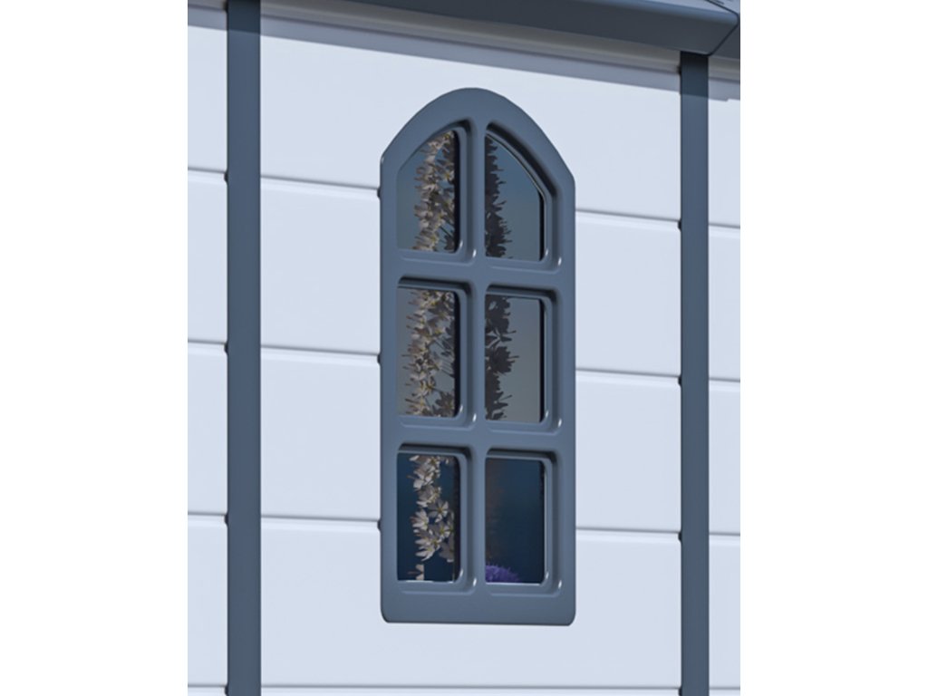 V žádném pořádném zahradním domku nesmí chybět okénko. Ani u toho našeho nechybí, navíc si je můžete umístit kam chcete. Neomezujte se kvůli dostatku světla a nerozmýšlejte se, zda domek postavit ke zdi domu, nebo do volného prostoru. Dostatečné množství světla vás nebude limitovat. Okno si jednoduše umístěte na pravou nebo levou stranu domku, podle aktuální potřeby.