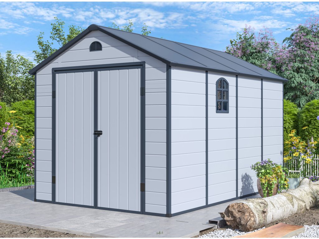 Zahradní domek G21 Boston 882 - 241 x 366 cm, plastový, světle šedý