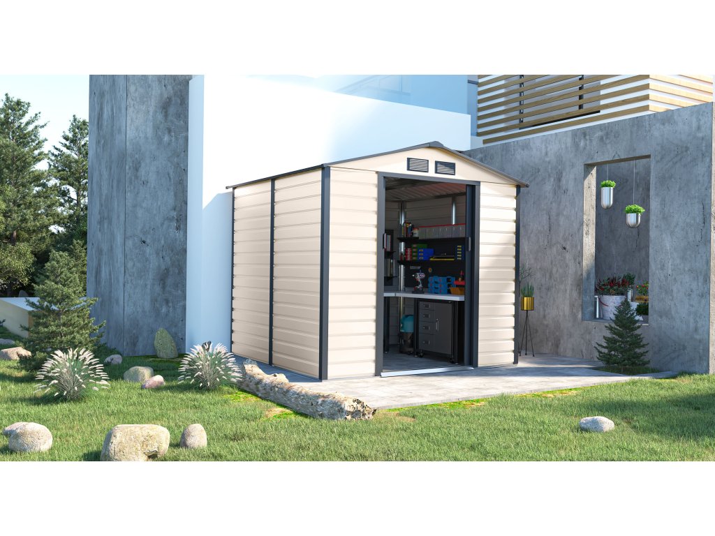Zahradní domky na nářadí v moderním designu se hodí do každé zahrady. Vstupní dveře jsou dostatečně široké, proto do domečku pohodlně uložíte své nářadí, zahradní kolečko i venkovní nábytek.