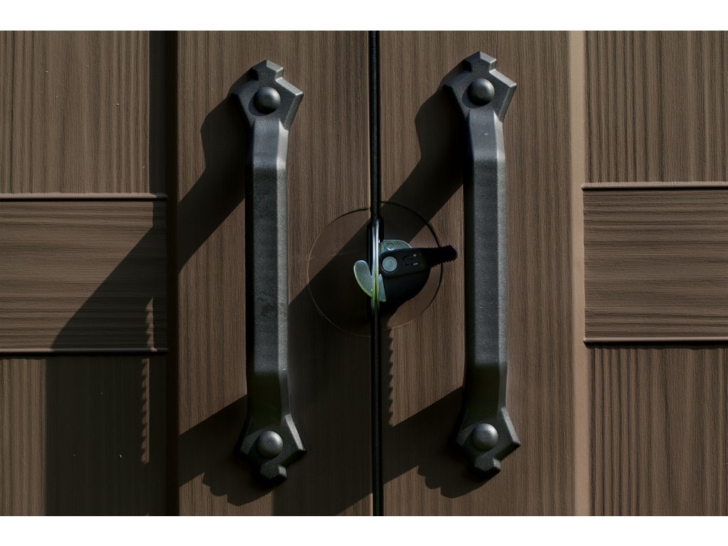 Keter Factor má dvoukřídlé dveře i 1 malé okénko, skrze které se dovnitř dostane sluneční svit. Výrobce se také postaral o vhodný ventilační systém s regulovanou cirkulací vzduchu. Přední dveře jsou opatřeny ocelovou západkou, na kterou lze nasadit visací zámek pro větší bezpečnost (není součástí dodávky).