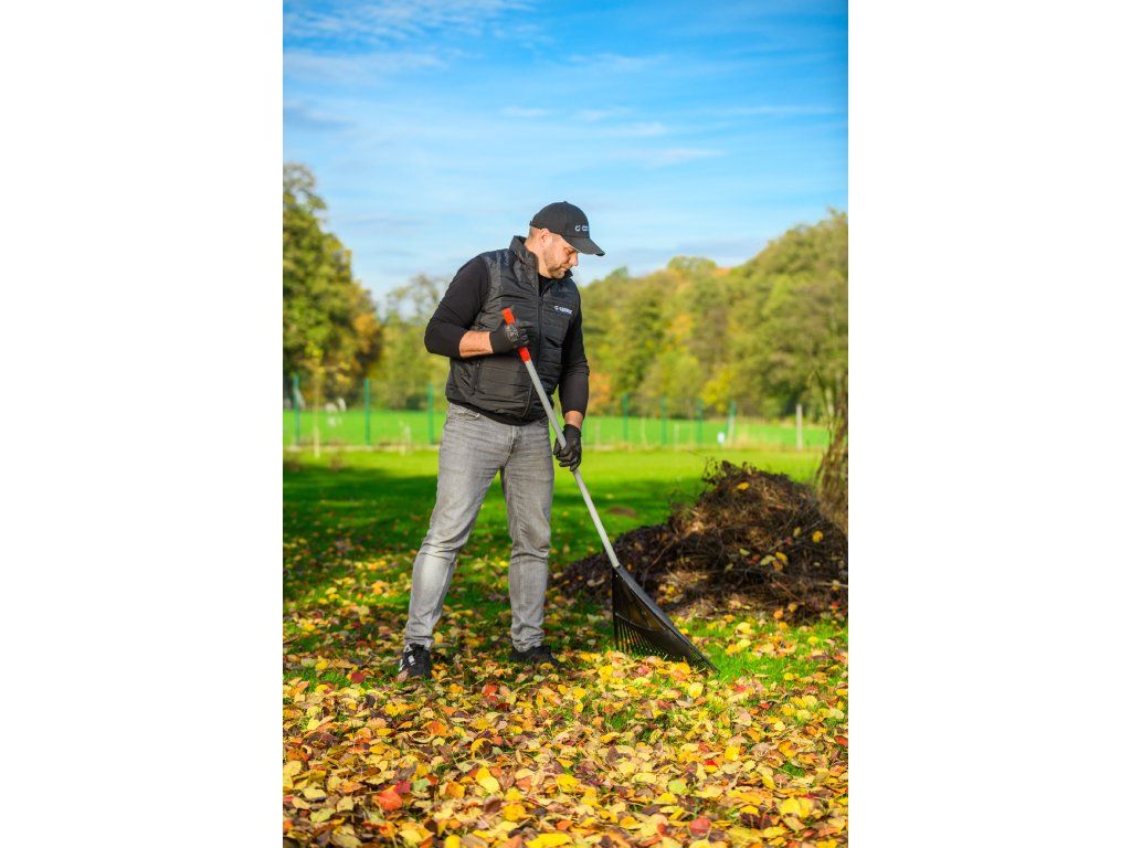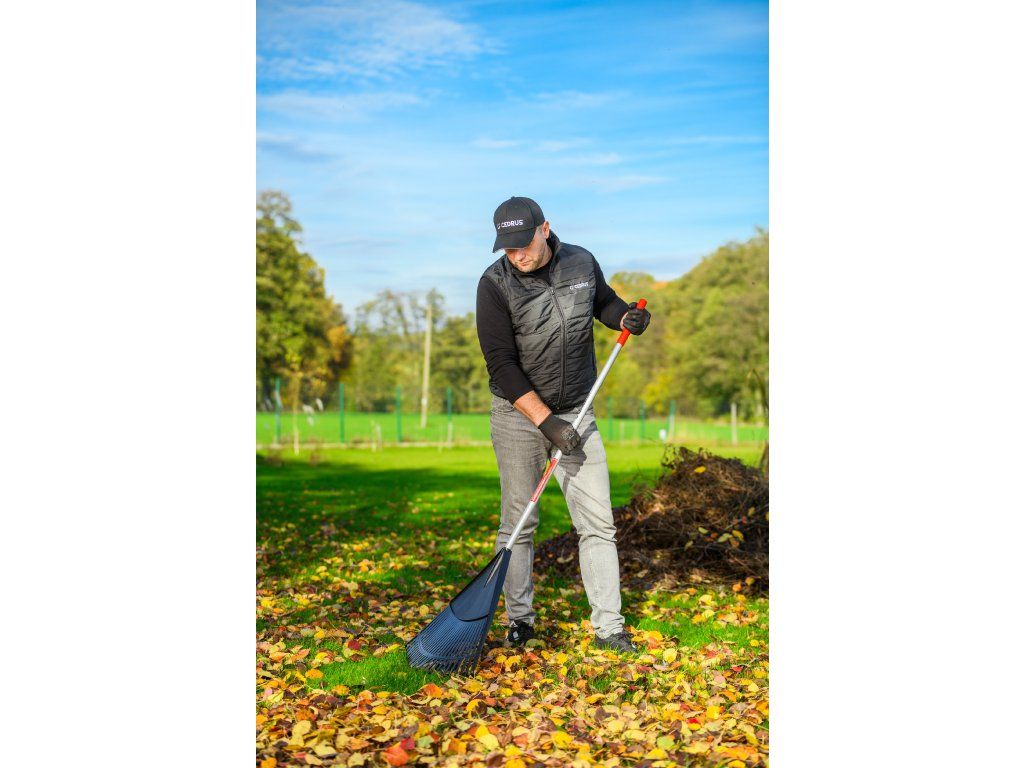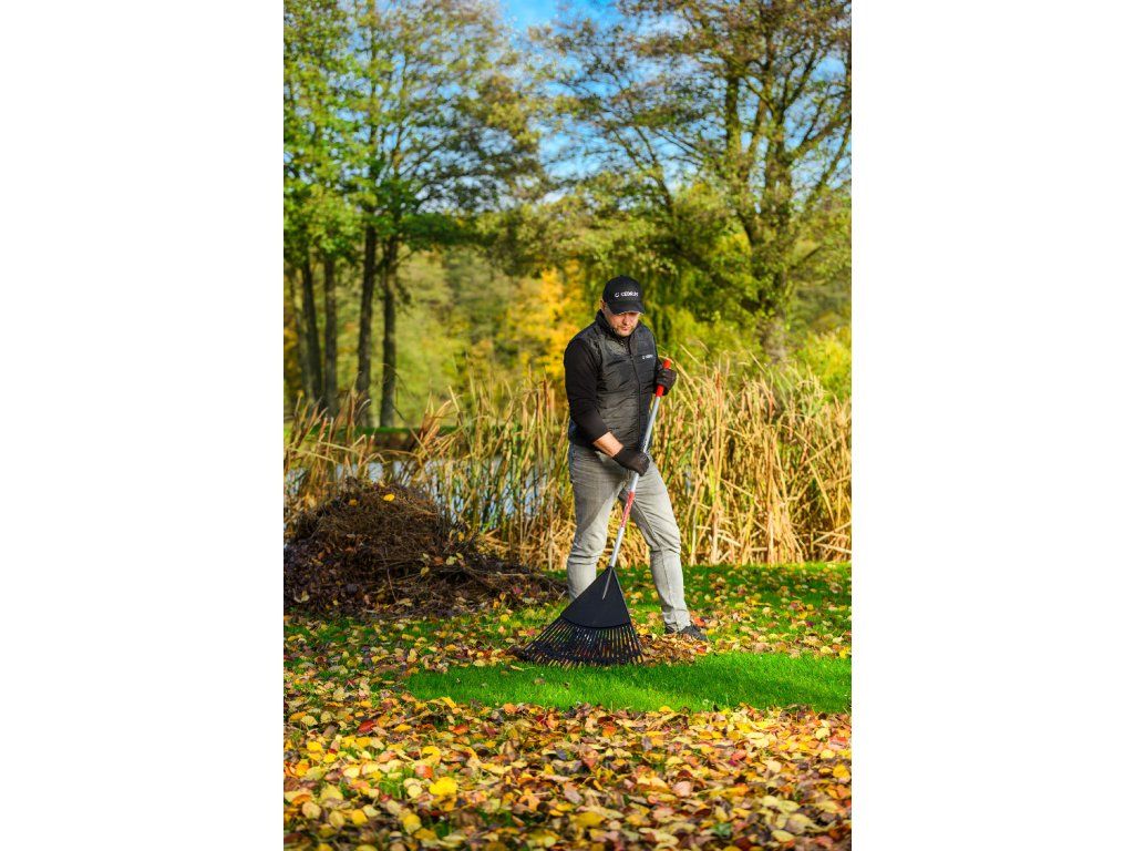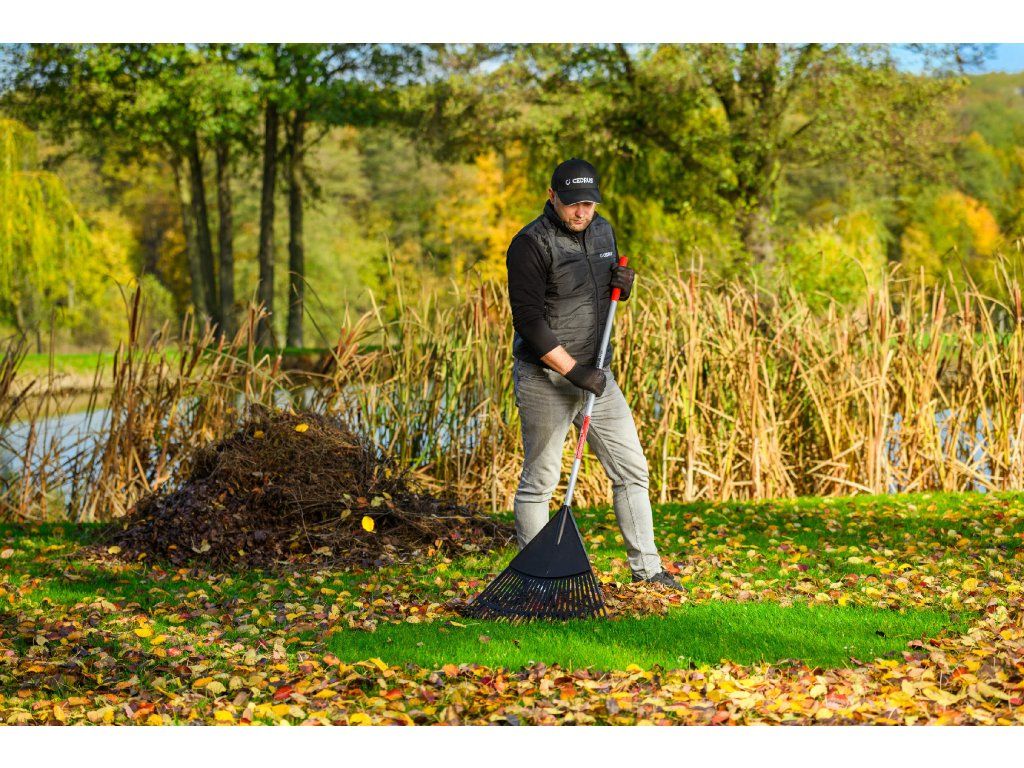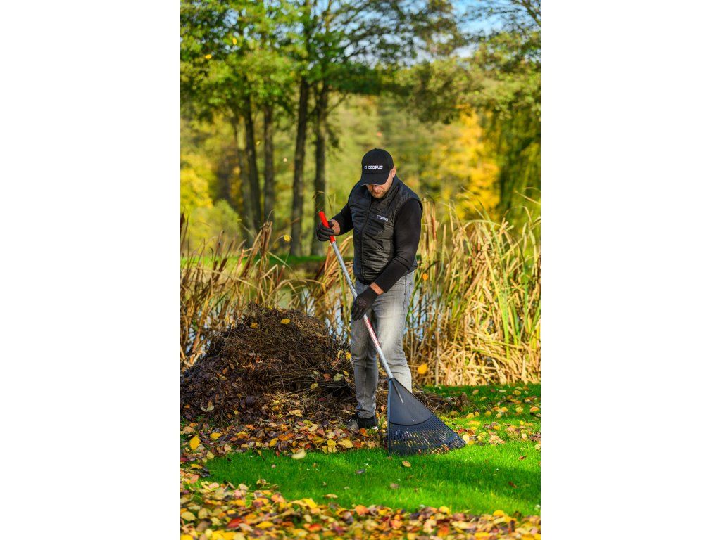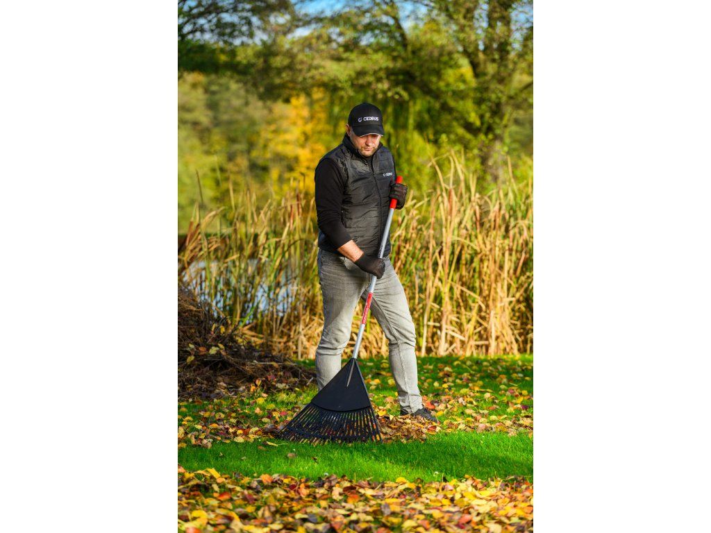 Zahradní hrábě Cedrus RK26T jsou navrženy pro snadné a rychlé shrabování listí, trávy či jiných nečistot z trávníků, cest nebo dvorků. Široká pracovní hlavice o šířce 600 mm s 26 pružnými zuby umožňuje efektivní práci i na rozlehlých plochách, přičemž šetrně zachází s trávníkem.