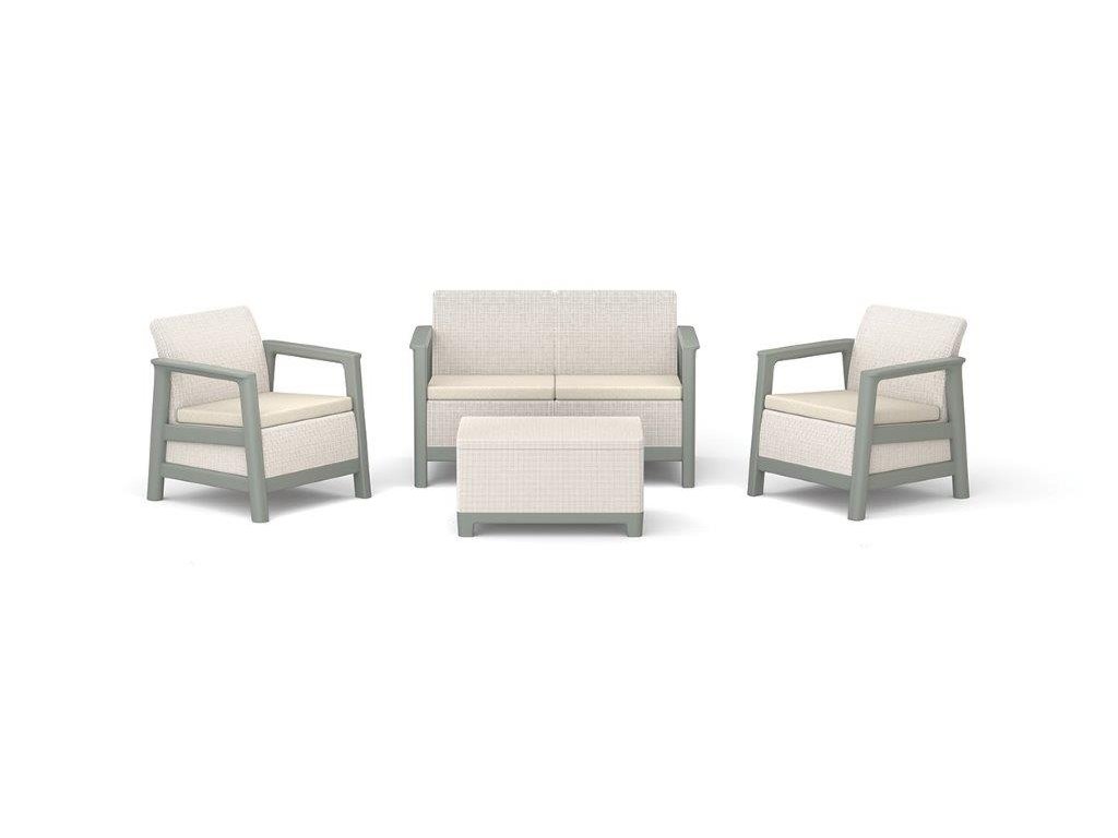 Zahradní nábytek Keter Scandi set dvousedadlová pohovka + 2 křesla + úložný stůl béžovo šedý