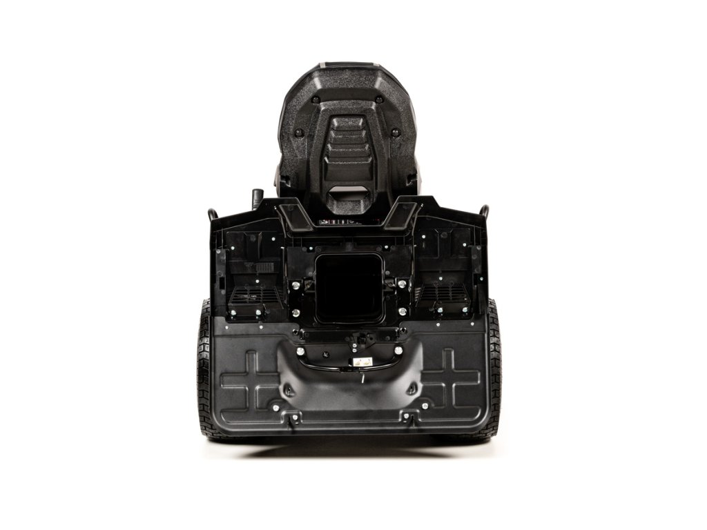 - Stroj seče pomocí dvou nožů v lisovaném žacím ústrojí se záběrem 84 cm a umožňuje nastavení výšky sečení od 30 do 90 mm. Tráva je sbírána do velkého koše o objemu 280 litrů, přičemž stroj nabízí i možnost mulčování nebo volitelného bočního výhozu.