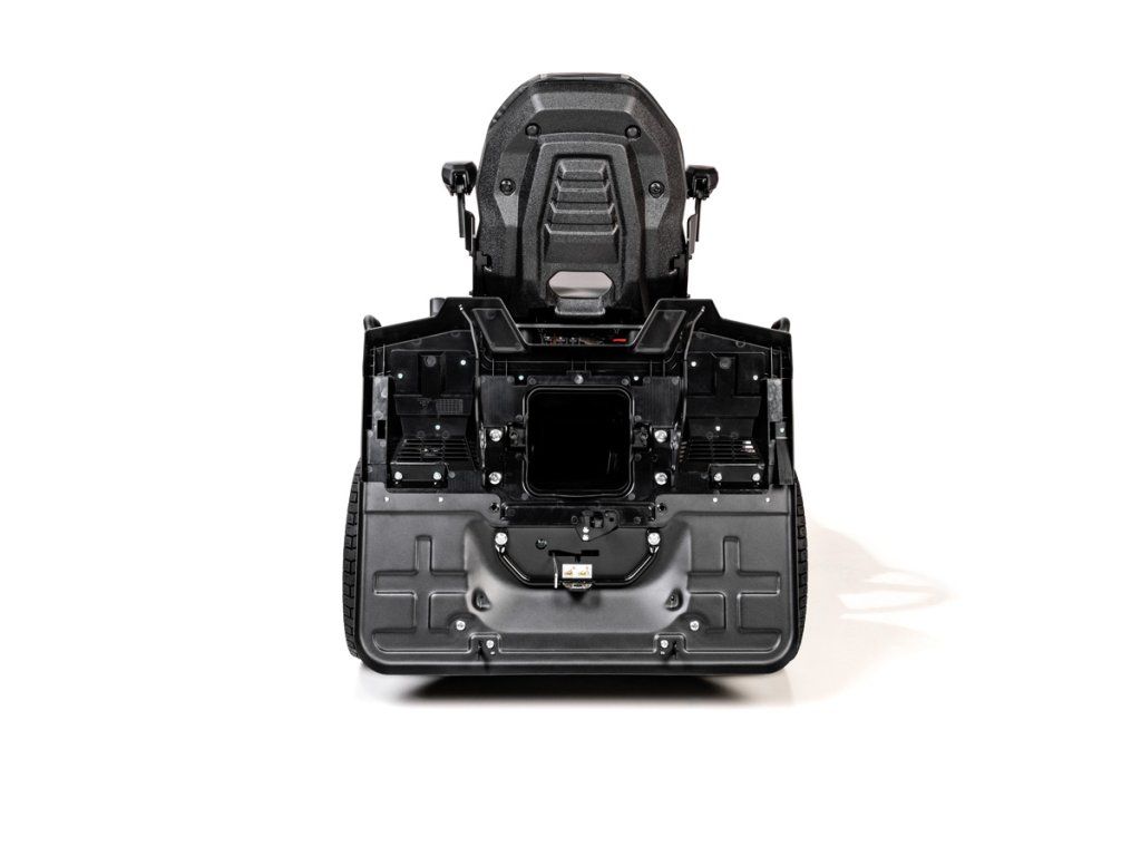 - Žací ústrojí se záběrem 93 cm se dvěma noži umožňuje rychlé a efektivní sečení. Posečená tráva je sbírána do objemného koše 280 l s akustickým indikátorem naplnění. Součástí standardní výbavy je také mulčovací sada, která umožňuje přirozené hnojení trávníku.