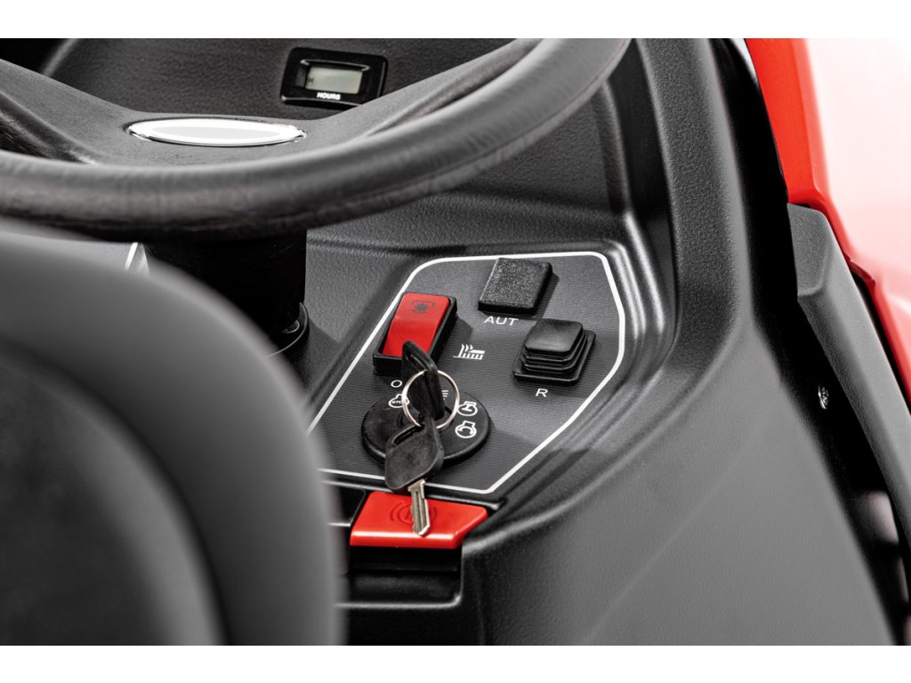 Díky ergonomickému sedadlu, snadnému ovládání výšky sečení (25–80 mm) a možnosti sečení při couvání je práce s traktorem pohodlná a efektivní. Halogenové světlomety umožňují bezpečné používání i za horších světelných podmínek.